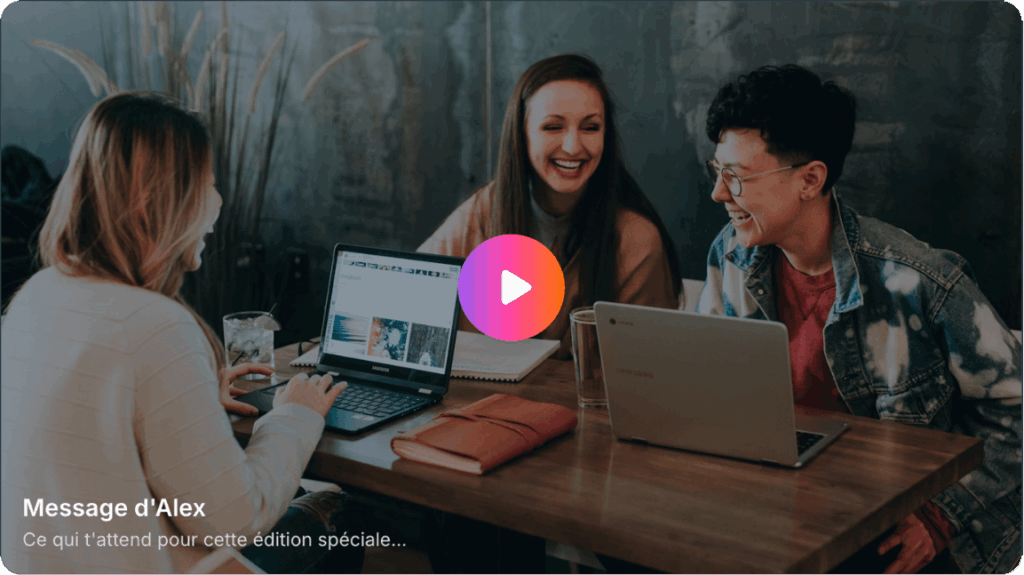 Mais si tu ne peux pas être présent à tous les lives ou si tu veux revoir les cours, les replays seront disponibles pour tous les inscrits jusqu’à la fin de la semaine, le dimanche.